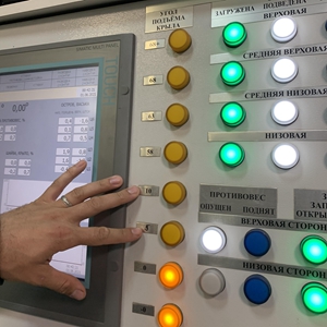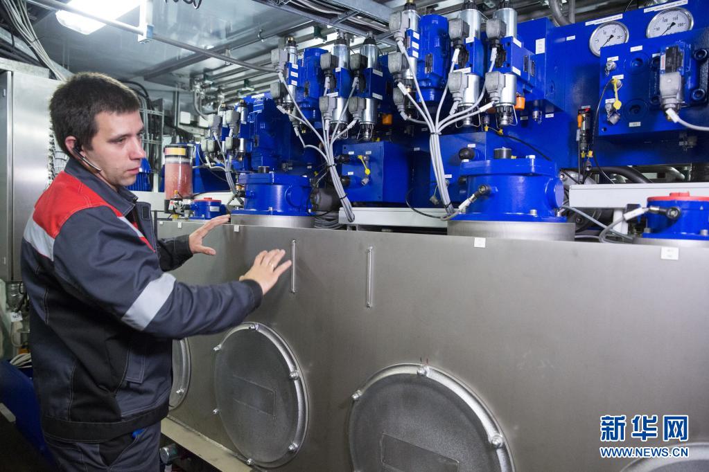 6月1日凌晨,工作人员在俄罗斯圣彼得堡冬宫桥的动力室内介绍开桥操控程序。