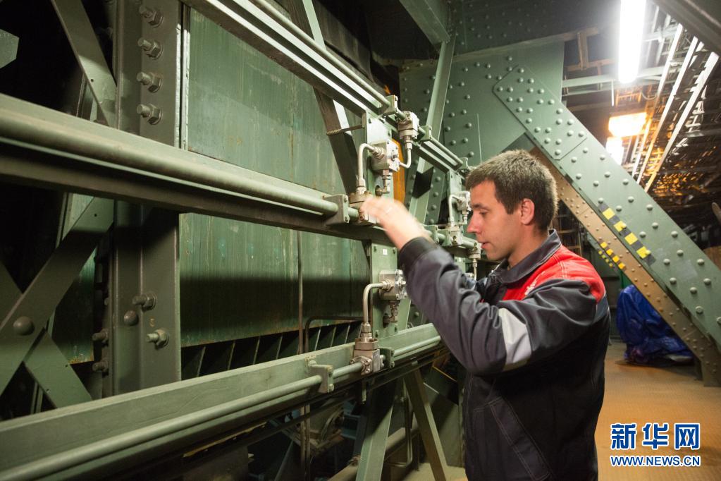 6月1日凌晨,工作人员在俄罗斯圣彼得堡介绍冬宫桥开桥时桥下机械结构运作原理。