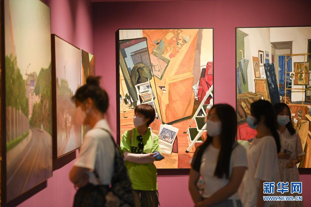 6月2日,参观者在浙江美术馆观看油画作品。