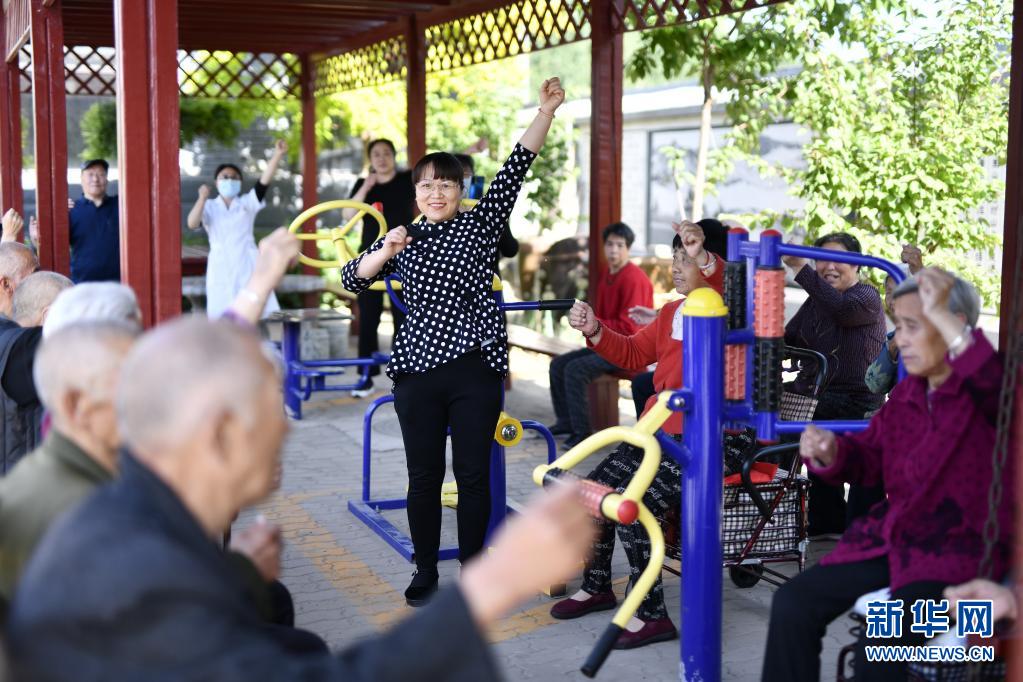 6月2日,滦州市滦城街道曹坎村金阳居家养老服务中心工作人员带领老人们做操。