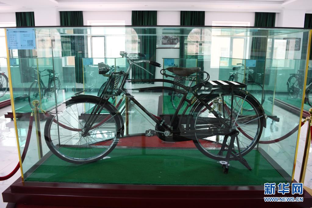 这是在甘肃三木自行车博物馆拍摄的1903年产自日本的飞鹰自行车(6月2日摄)。