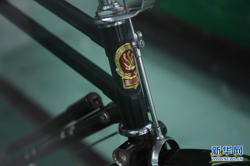 这是在甘肃三木自行车博物馆拍摄的中国生产的凤凰自行车车标(6月2日摄)。