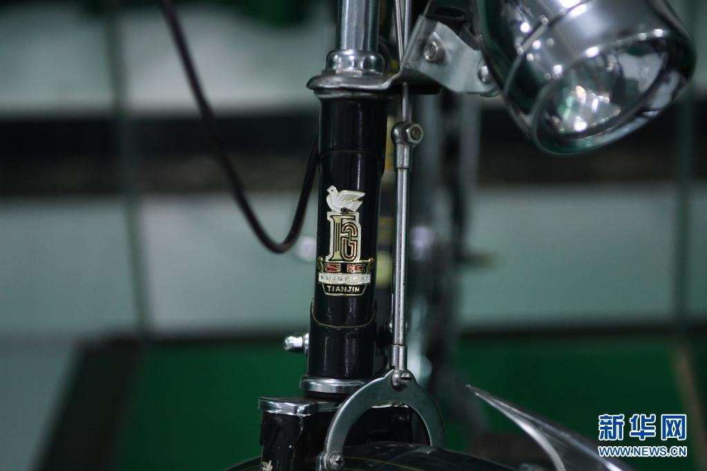 这是在甘肃三木自行车博物馆拍摄的中国生产的飞鸽自行车车标(6月2日摄)。
