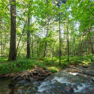 初夏时节,位于黑龙江省伊春市的上甘岭溪水国家森林公园绿意盎然,景色怡人。