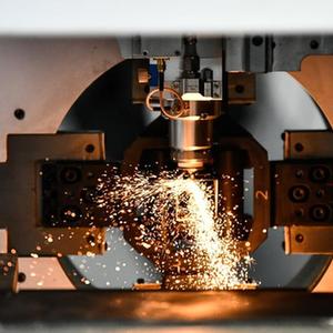 6月3日,在天津工博会上,激光切割机在进行金属切割作业。