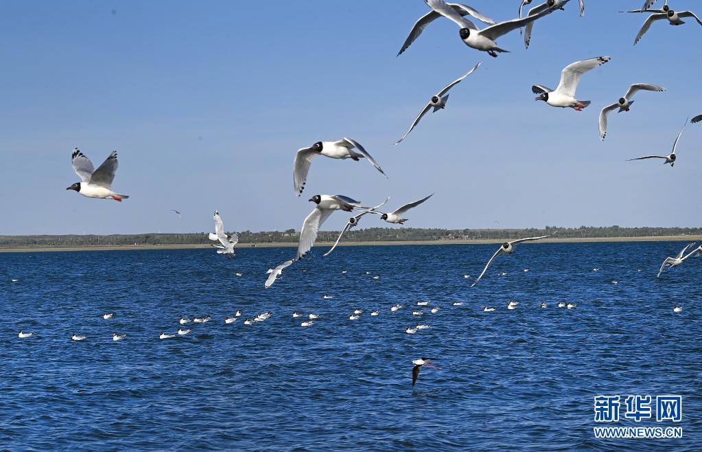 近期,随着气温升高,陕西省神木市红碱淖湿地保护区成了遗鸥的乐园,遗鸥在这里觅食嬉戏、孵化后代。