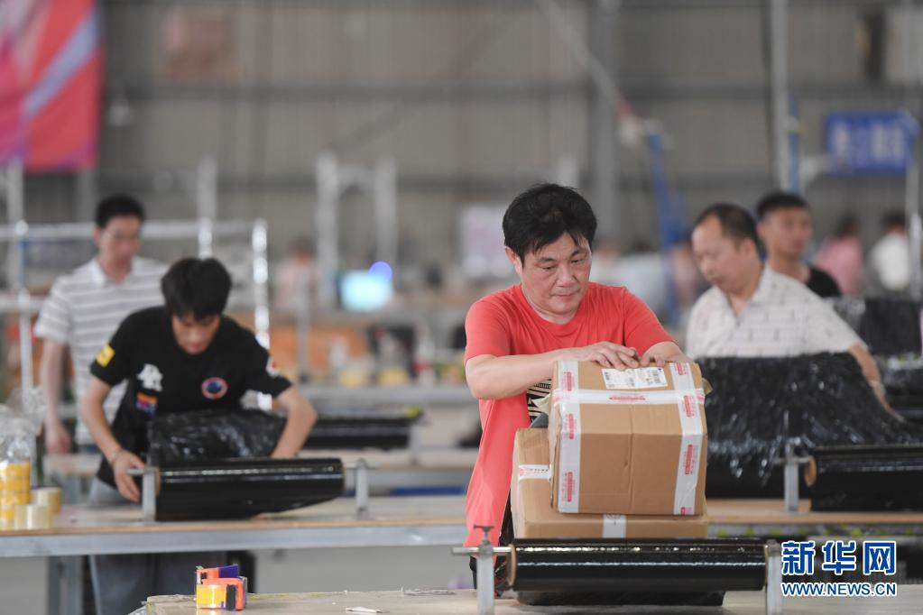 6月3日,在中国(福建)自由贸易试验区一处跨境物流集运仓,工作人员为跨境商品打包。新华社记者 宋为伟 摄