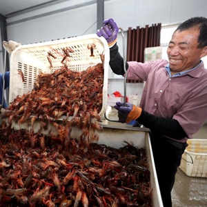 6月3日,全椒县十字镇陈浅村村民在搬运捕捞的小龙虾。近年来,安徽省全椒县调整农业产业结构,依托当地资源优势,通过“稻虾共作”、土地流转、资金入股、劳务就业等形式,发展小龙虾养殖产业,助力群众增收致富。新华社发(沈果 摄)
