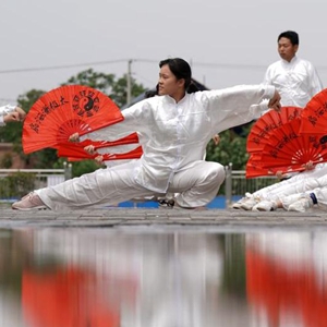 6月3日,河北邢台经济开发区沙河城镇中学学生在练习太极扇。近年来,邢台经济开发区沙河城镇中学积极开展“阳光大课间”系列活动,将太极扇项目引进校园,丰富校园文化生活,增强学生体质。新华社记者 骆学峰 摄