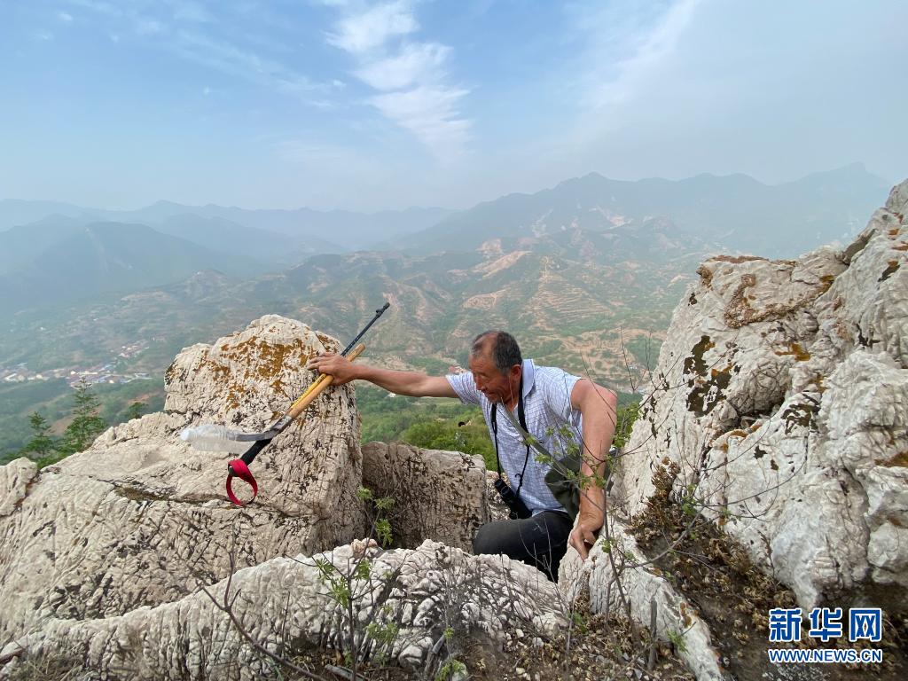 6月2日,侯云成在巡视途中爬山。