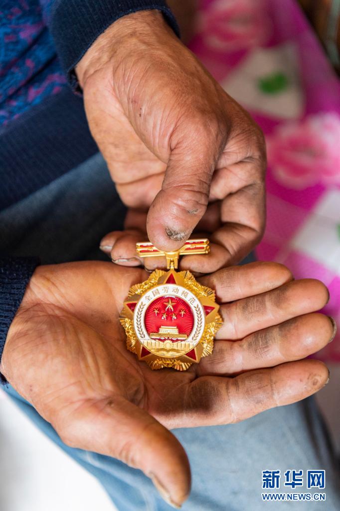 6月3日,在黑龙江省伊春市乌马河林业局有限公司乌马河林场分公司施业区的家中,张英善展示全国劳动模范奖章。新华社记者 谢剑飞 摄