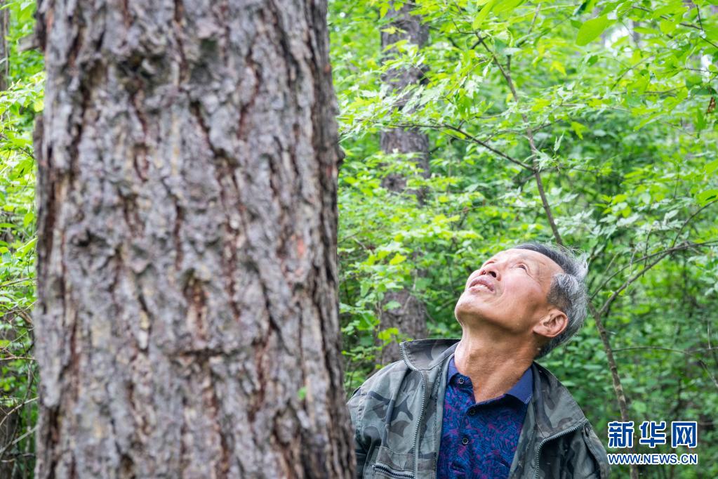 6月3日,在黑龙江省伊春市乌马河林业局有限公司乌马河林场分公司施业区,张英善在查看他30多年前种下的松树。新华社记者 谢剑飞 摄