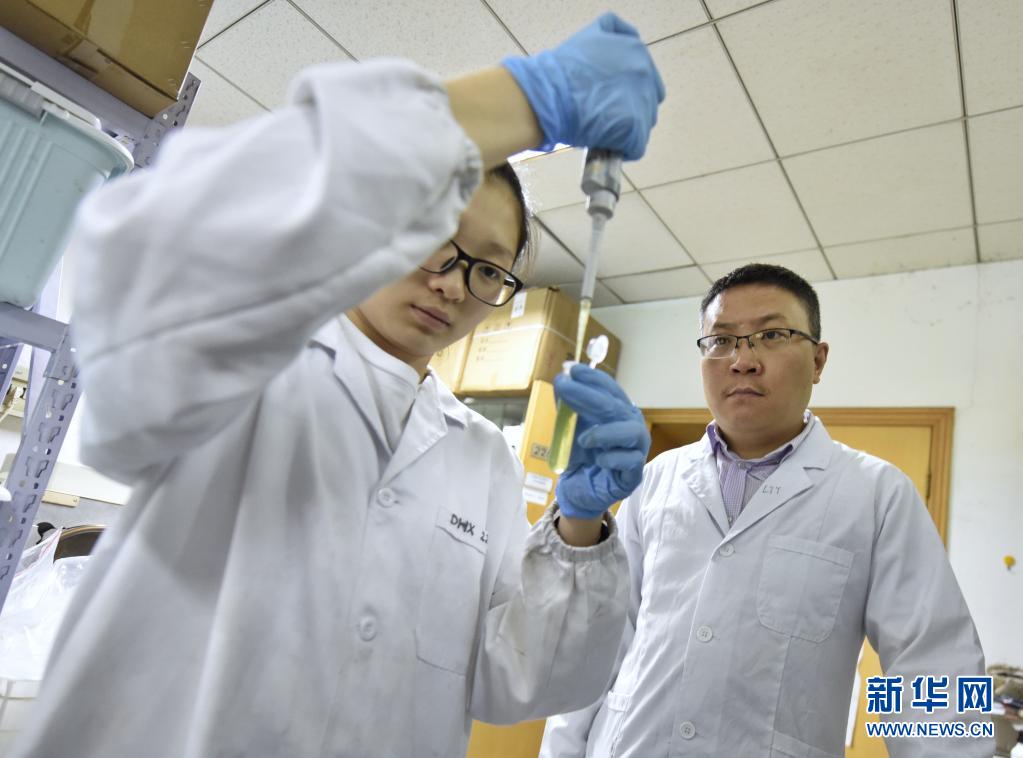 6月2日,在中国科学院成都生物研究所内,李东(右)在等待学生的检测结果。