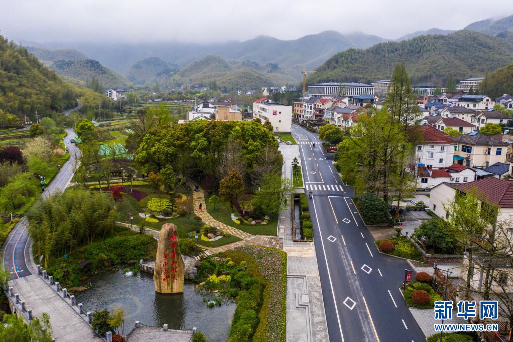 空中俯瞰浙江省安吉县天荒坪镇余村(2020年3月31日摄,无人机照片)。新华社记者 徐昱 摄
