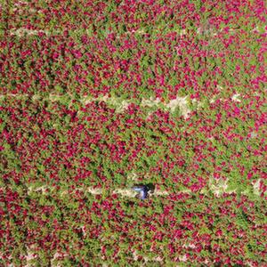 6月4日在济南济阳区新市镇花谷核心区拍摄的地被玫瑰(无人机照片)。