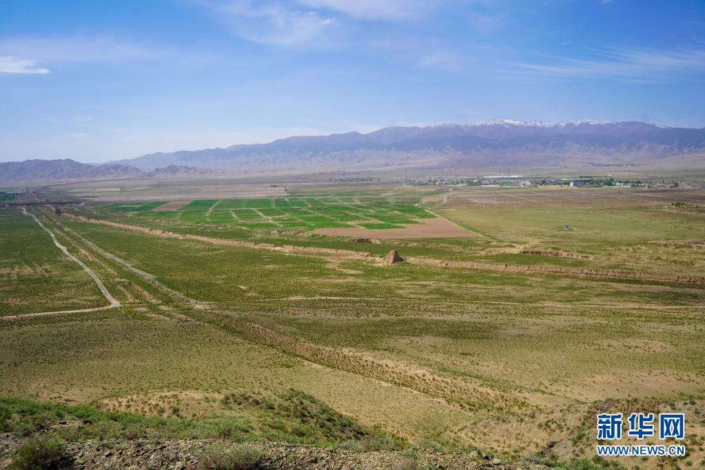 这是在甘肃省张掖市山丹县拍摄的汉代壕堑和明代长城并行的景象(无人机照片,5月28日摄)。山丹地处河西走廊中部,境内汉、明长城绵延近200公里。