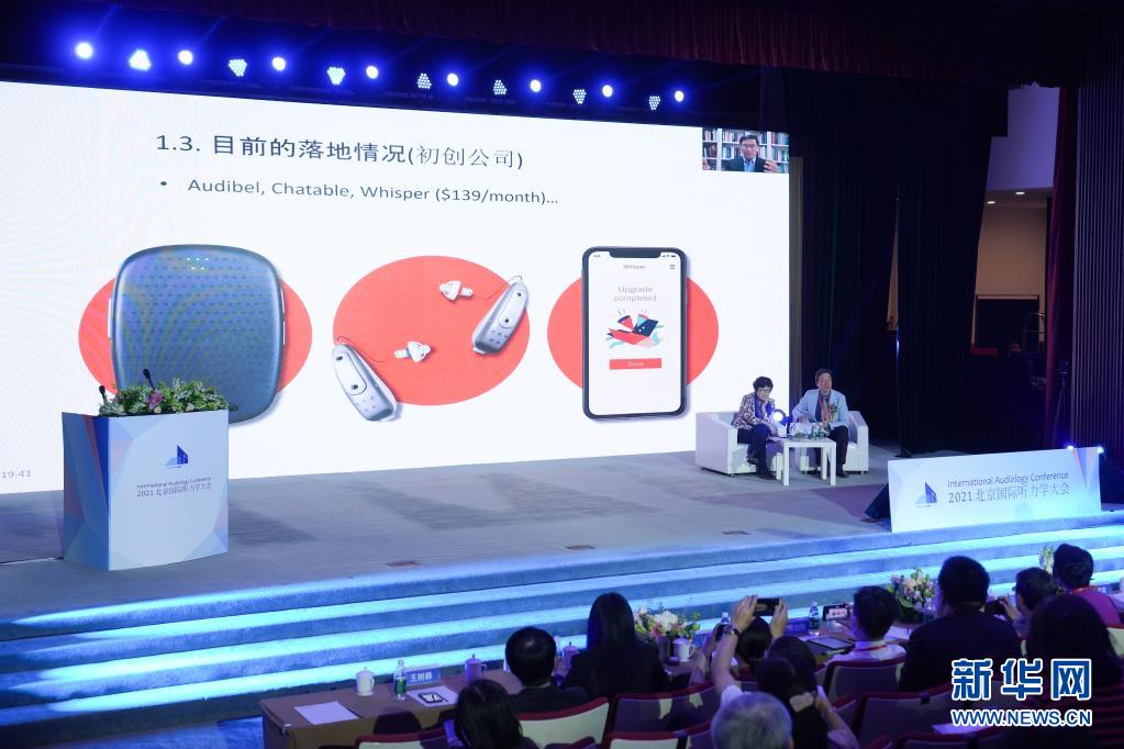 6月5日,在2021北京国际听力学大会主会场,嘉宾通过线上方式进行分享。新华社记者 鞠焕宗 摄
