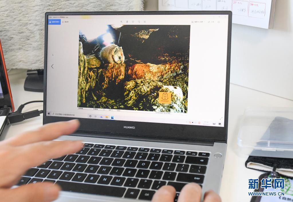 李维东在工作室整理设置于乌鲁木齐天山一号冰川观测点的远红外摄像机拍到的伊犁鼠兔照片(6月1日摄)。新华社记者 潘莹 摄