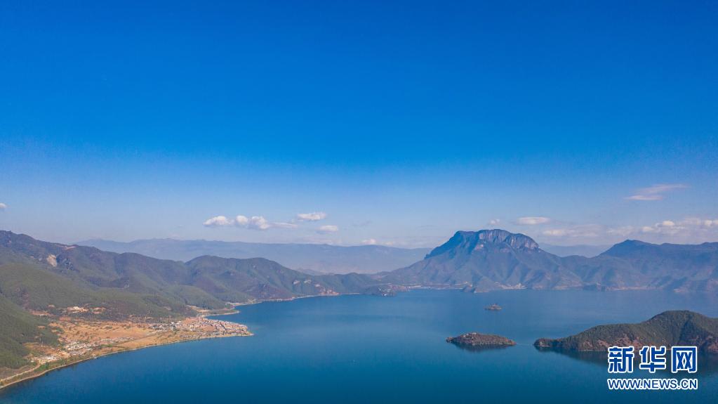 这是在云南丽江宁蒗县永宁镇拍摄的泸沽湖一景(4月18日摄,无人机照片)。新华社记者 胡超 摄