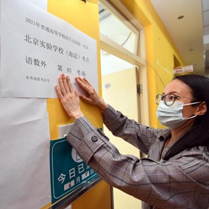 6月5日拍摄的在北京实验学校(海淀)考点入口设置的考生身份识别系统。新华社记者 任超 摄