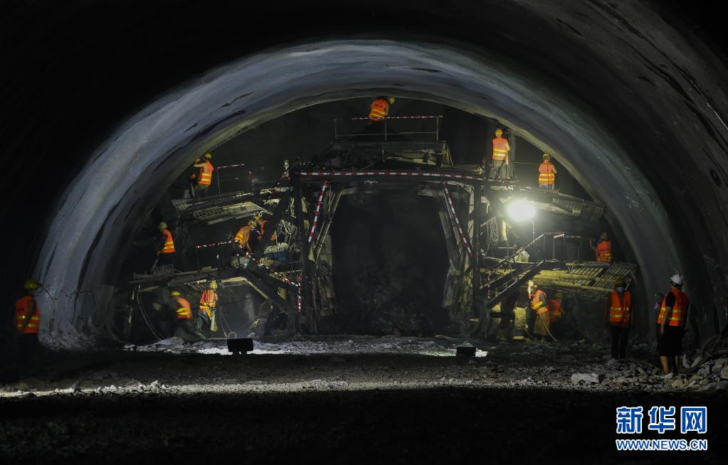 施工人员在进行钻孔作业,为隧道爆破贯通做准备(5月30日摄)。