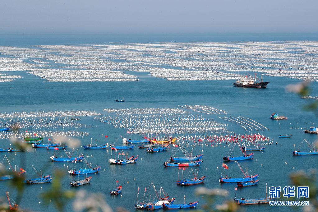 这是5月30日在浙江省舟山市嵊泗县枸杞岛拍摄的贻贝养殖基地。