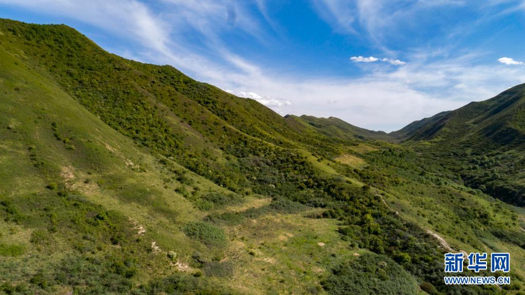 宁夏固原市原州区马东山林场山坡被绿色覆盖(无人机照片,6月3日摄)。新华社记者 杨植森 摄