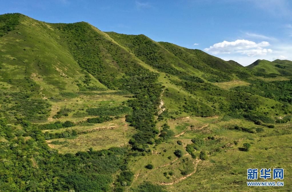 宁夏固原市原州区马东山林场山坡被绿色覆盖(无人机照片,6月3日摄)。新华社记者 杨植森 摄