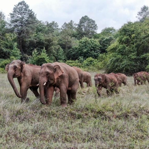 6月4日在昆明市晋宁区双河彝族乡拍摄的野象(无人机照片)。记者从云南省亚洲象群北迁安全防范工作现场指挥部了解到,截至6月5日15时10分,象群先行向西南再转向西北迁移12.1公里,由昆明市晋宁区双河彝族乡进入夕阳彝族乡活动。新华社发