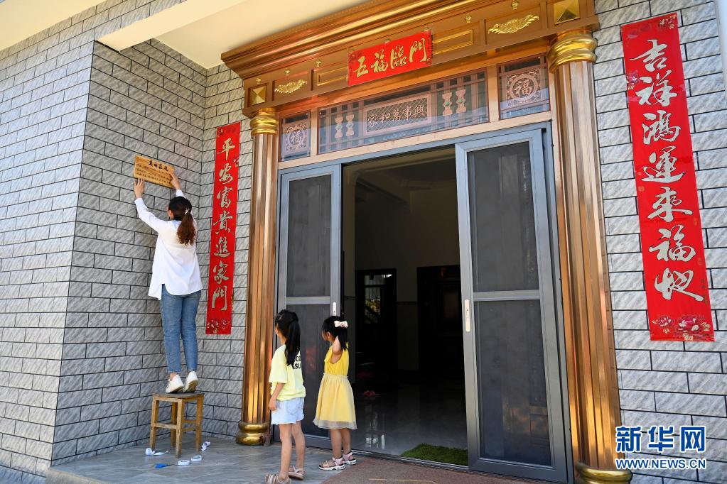 6月5日,在柳州市柳江区穿山镇高平村,村民把写有家训家规的木牌悬挂在家门口。新华社发(黎寒池 摄)