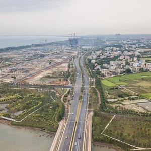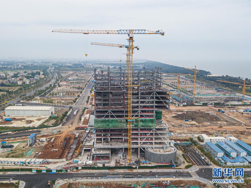 这是6月4日在海口江东新区拍摄的江东国际能源中心项目(无人机照片)。