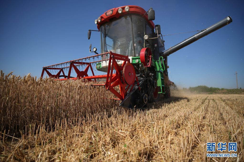 近日,河北省小麦陆续成熟,各地农民抓紧农时开展夏收作业。