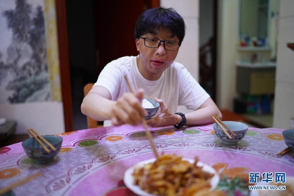 周涛在家里吃饭(6月3日摄)。新华社记者 周密 摄