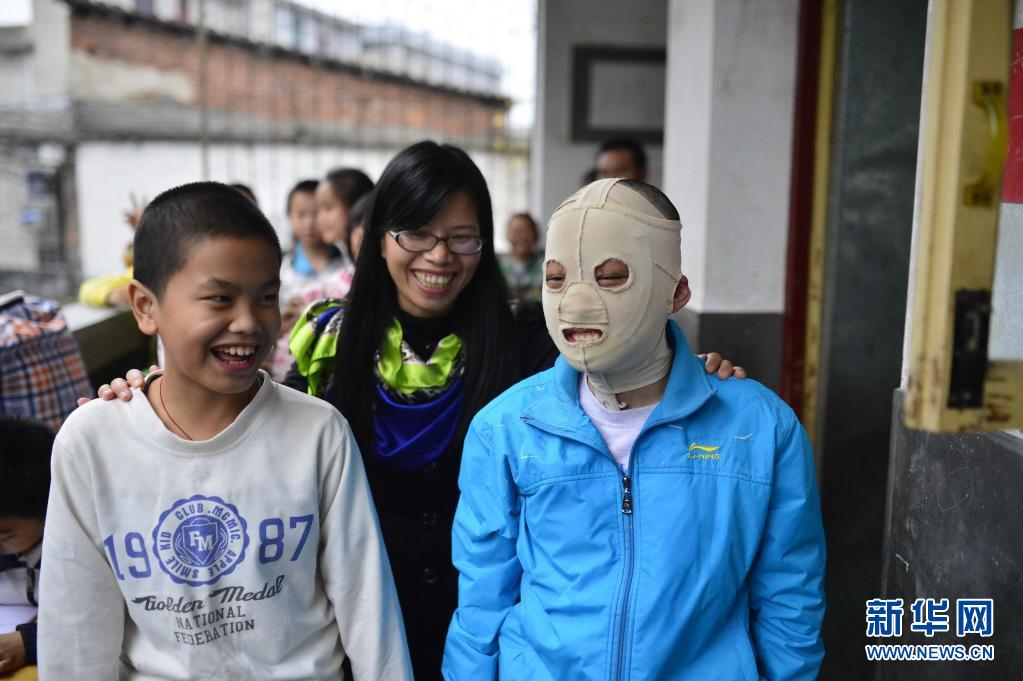 重返校园后,老师和同学们与周涛聊天谈心(2014年11月5日摄)。新华社记者 周密 摄