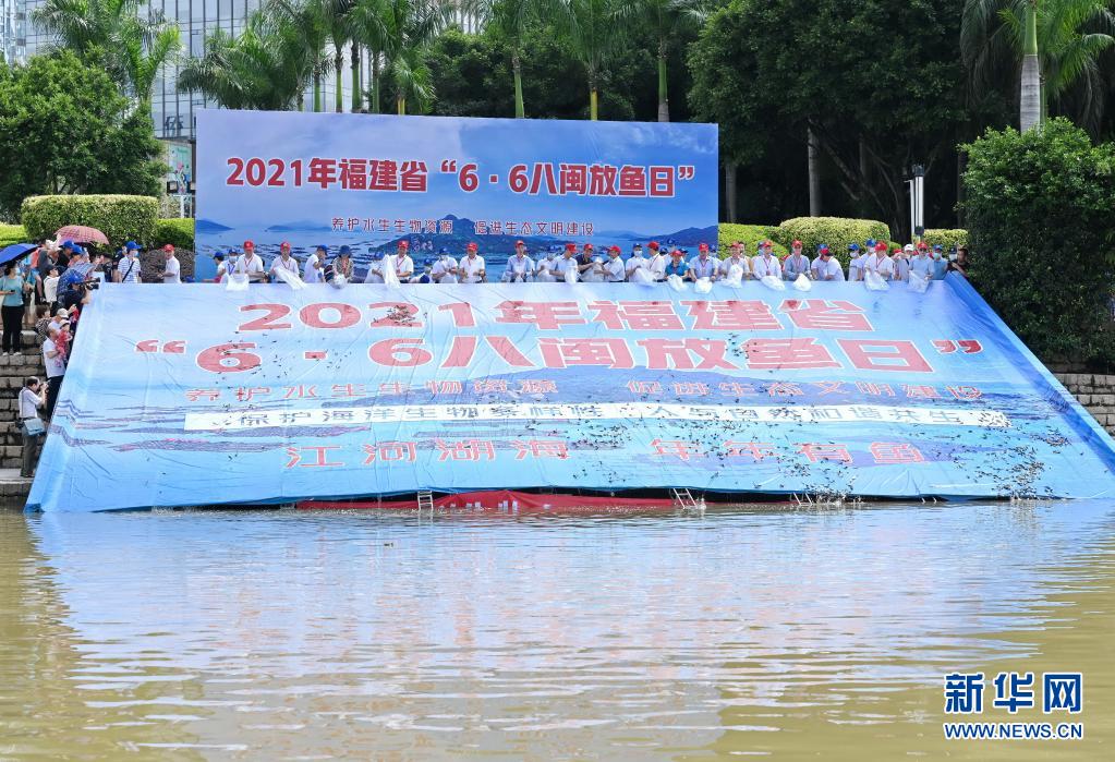 当日,2021年福建省“6·6八闽放鱼日”增殖放流主会场活动在福州闽江公园望龙园举行,主会场现场向闽江投放鲢鱼、鳙鱼约40万尾。
