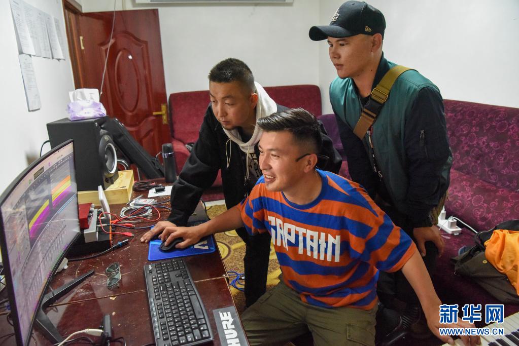 在新疆新源县那拉提镇,那拉提乐队成员在录音室制作歌曲(6月4日摄)。新华社记者 丁磊 摄