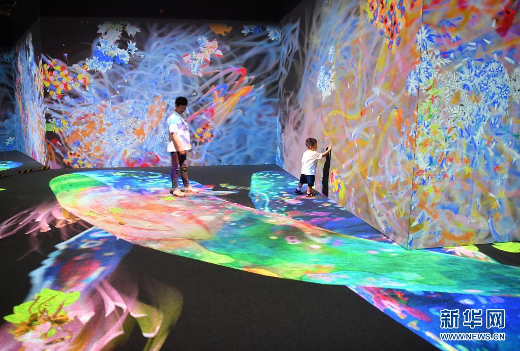 首届西安IN科技艺术节近日在西安市高新区举行,展览活动光影效果五彩绚烂、交互体验充满科技感,吸引许多家长带领孩子参观体验。