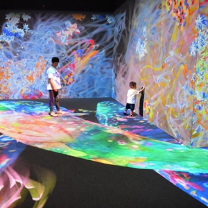 6月6日,小朋友在科技艺术节上的“teamLab Future Park”未来游乐园中体验交互动画。