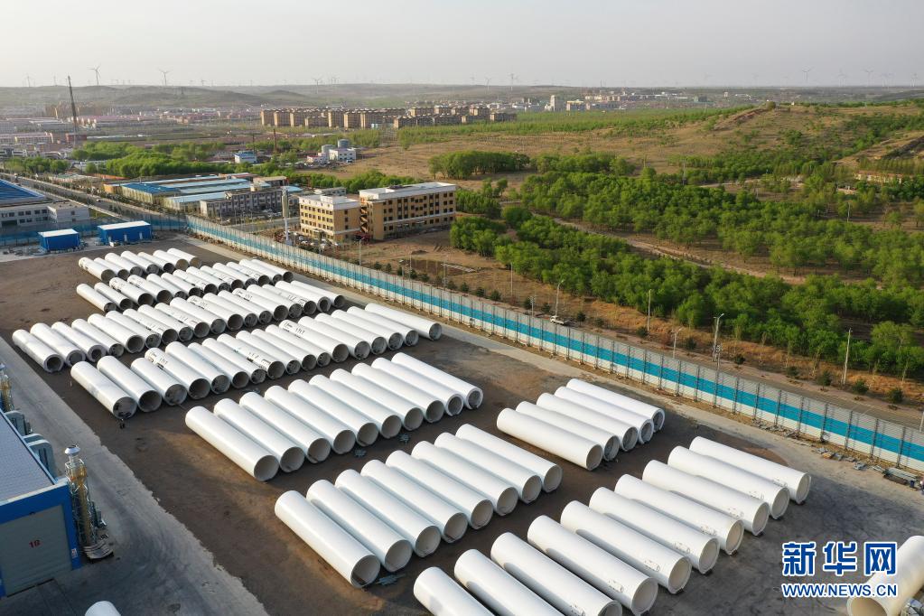 6月6日拍摄的河北省尚义县一家风电塔筒制造企业的厂区(无人机照片)。近年来,河北省尚义县抢抓张家口可再生能源示范区建设机遇,引进风电装备制造产业项目,扩展新能源装备制造产业链,为区域经济高质量发展注入新动力。新华社发(武殿森 摄)