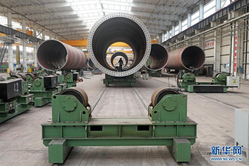 6月6日,工人在河北省尚义县一家风电塔筒制造企业的车间内工作。新华社发(武殿森 摄)