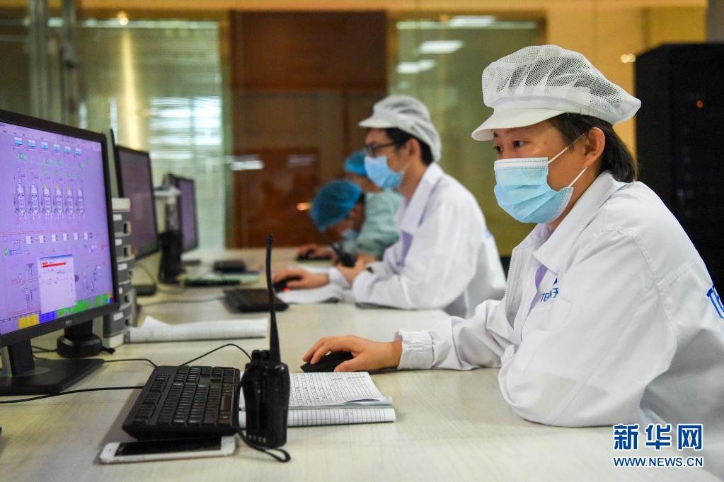 在新疆天润乳业股份有限公司,工作人员通过电脑显示监测生产数据(2020年5月26日摄)。新华社记者 丁磊 摄