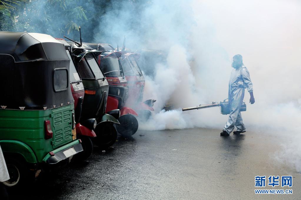 6月6日,工作人员在斯里兰卡首都科伦坡一个居民区喷洒药品消灭蚊虫。