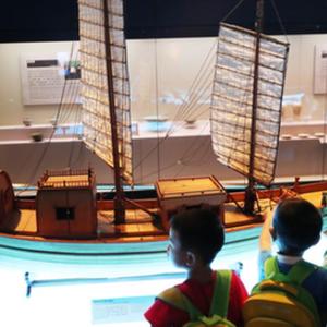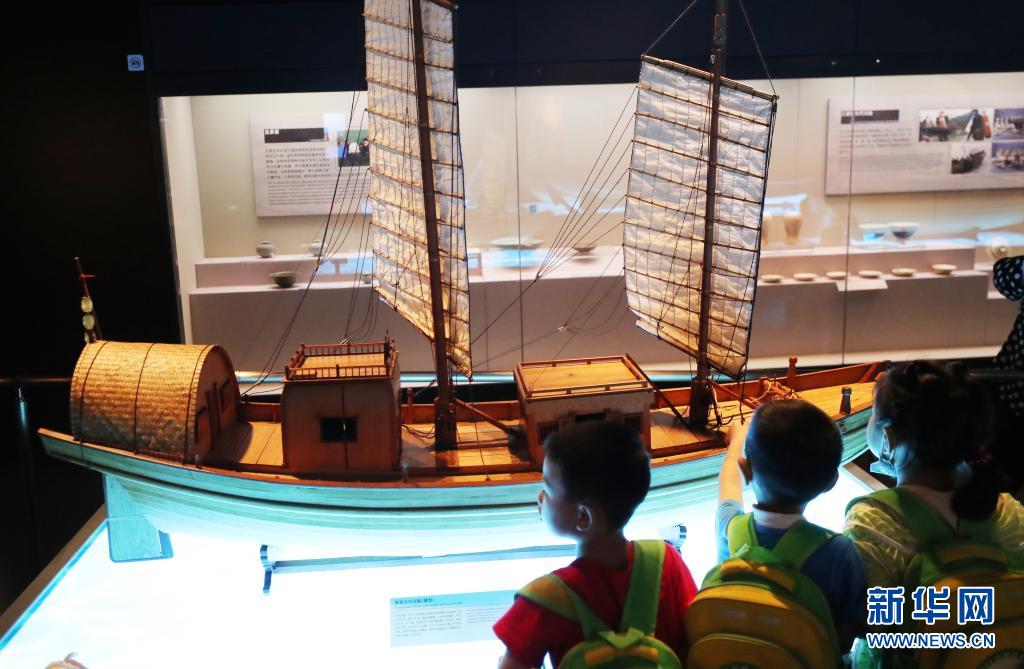 6月8日,小朋友在参观沉船复原模型。