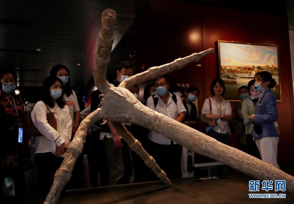 6月8日,观众在参观古代船锚展品。