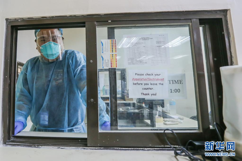6月8日,一名严密防护的工作人员站在位于菲律宾马尼拉的一所大学的实验课教室中。