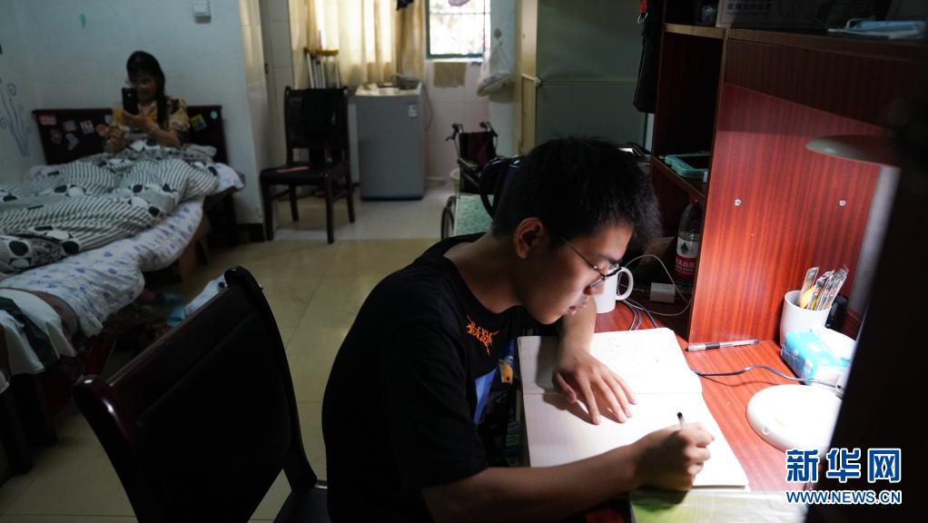 6月1日,赵建军在宿舍内温习功课。新华社记者胡晨欢摄