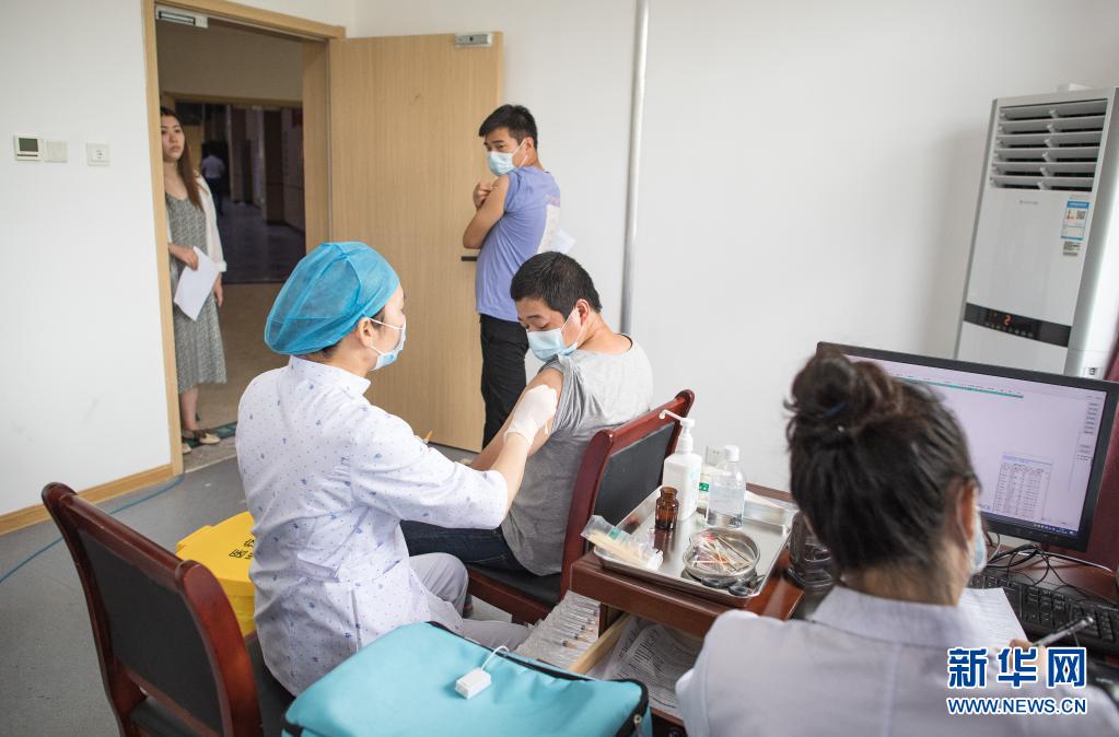 6月9日,市民在武汉江夏方舱医院接种新冠疫苗。