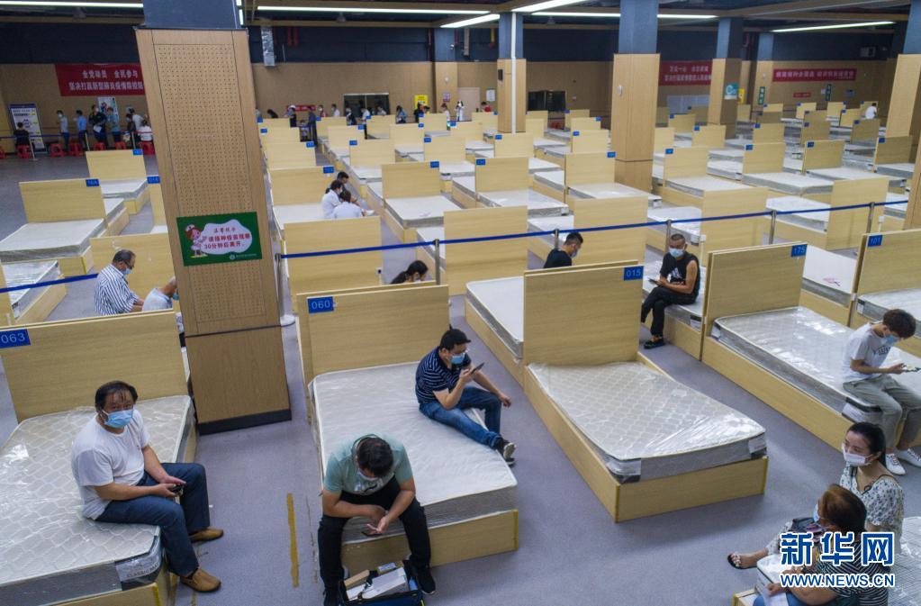 6月9日,市民在武汉江夏方舱医院接种新冠疫苗后留观休息。