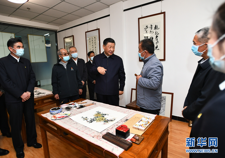 6月7日至9日,中共中央总书记、国家主席、中央军委主席习近平在青海考察。这是7日下午,习近平在西宁市城西区文汇路街道文亭巷社区书画室,观看退休人员书画练习。新华社记者 谢环驰 摄