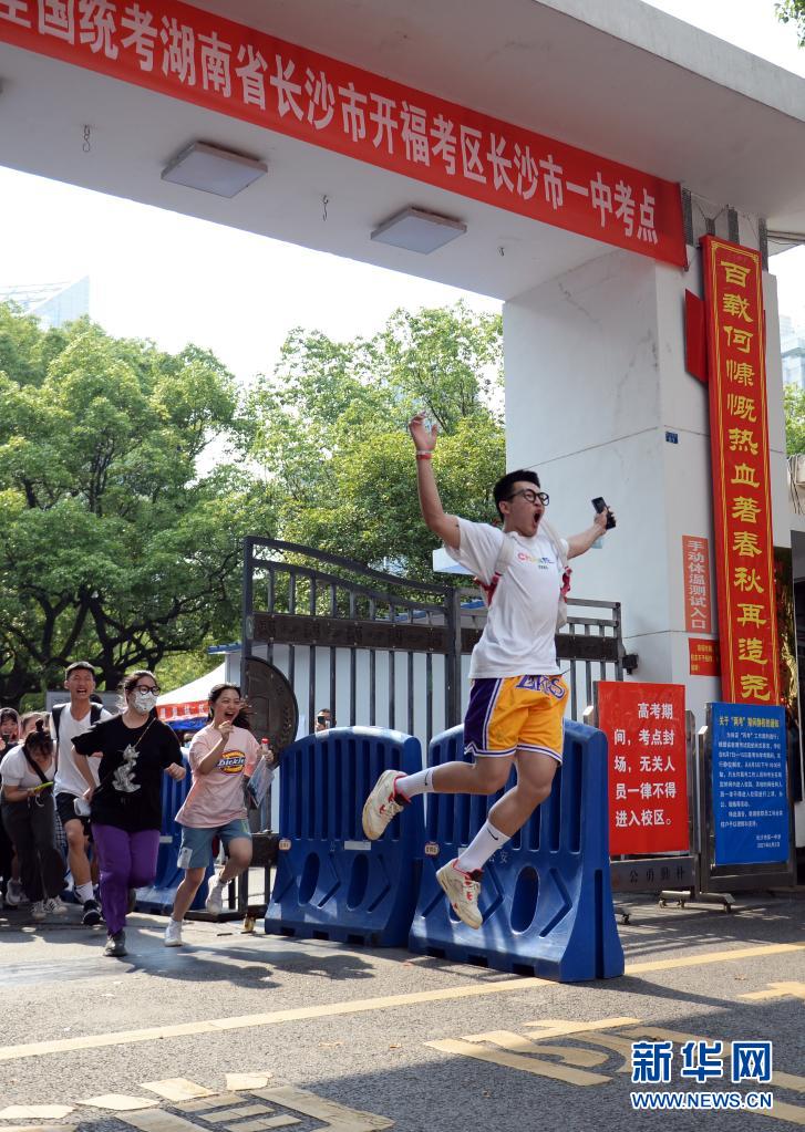 6月9日,考生在考试结束后跑出湖南省长沙市一中考点。